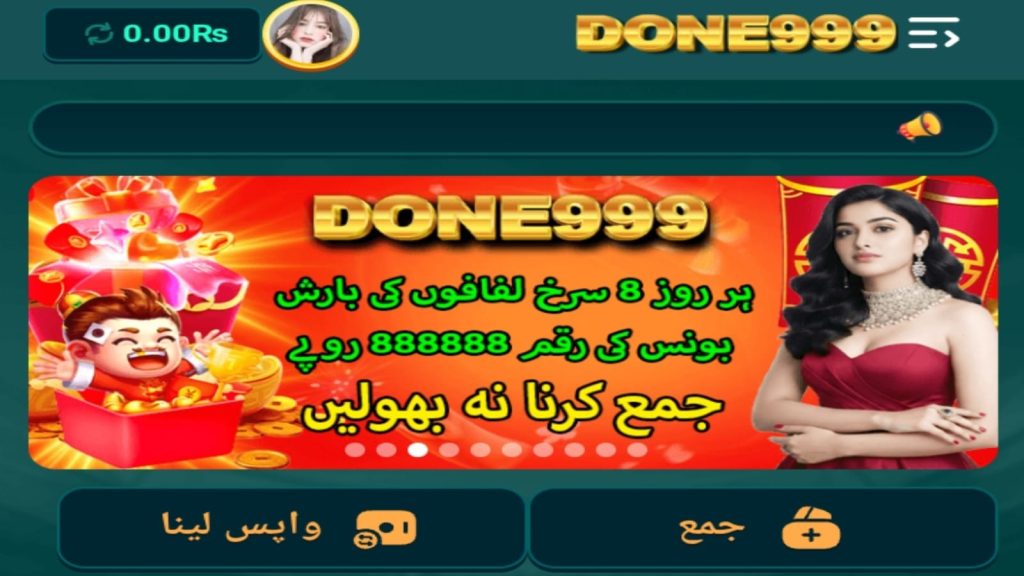 DONE999 Game is a modern mobile casino platform designed for players who enjoy real money gaming on their Android devices. With fast performance, user friendly design, and exciting casino features, DONE999 App is becoming popular among online gaming users in Pakistan. The platform combines entertainment, strategy, and earning opportunities in one place. Players can access multiple casino style games, including slots, card games, and live betting options.